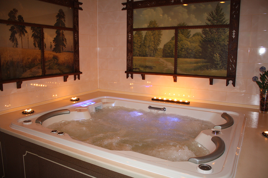 Вашем вниманию предлагается джакузи вместимостью до трёх человек. Гидромассаж может быть струйный и пузырьковый. Мягкий пузырьковый массаж эффективно снимет усталость мышц и напряжение. Сильный струйный массаж наполнит Вас энергией. Очень полезны сеансы гидромассажа в стрессовые периоды для организма – осенью и весной.
