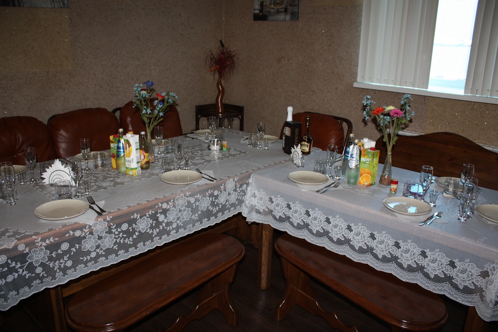 В банкетной Вы можете отметить любой праздник. Помолвка, девичник, мальчишник, день Рождения и т.д. Мы предлагаем Вам большой и удобный стол с сервировкой (вместимостью до 25 человек), телевизор и музыкальный центр. От души можно спеть в караоке хоть соло, хоть дуэтом (в наличии диски на любой музыкальный вкус). Внимательный и вежливый персонал обслужит Ваш праздник и проследит, чтобы у Вас остались лишь самые лучшие воспоминания.